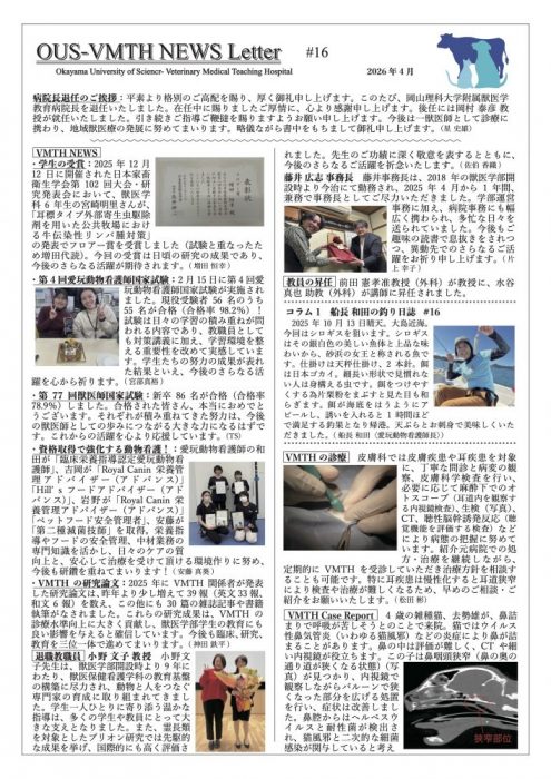 NewsLetter #15OUS-VMTH NEWS Letter 2026 Vol.16を刊行いたしました。